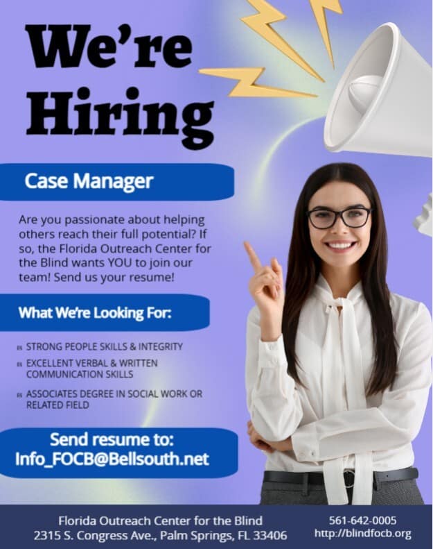 Florida Outreach Center for the Blind, Inc. (FOCB) believes that individuals who are blind or visually impaired have the right to tools and training that will allow them to reach their personal, academic, and vocational goals.