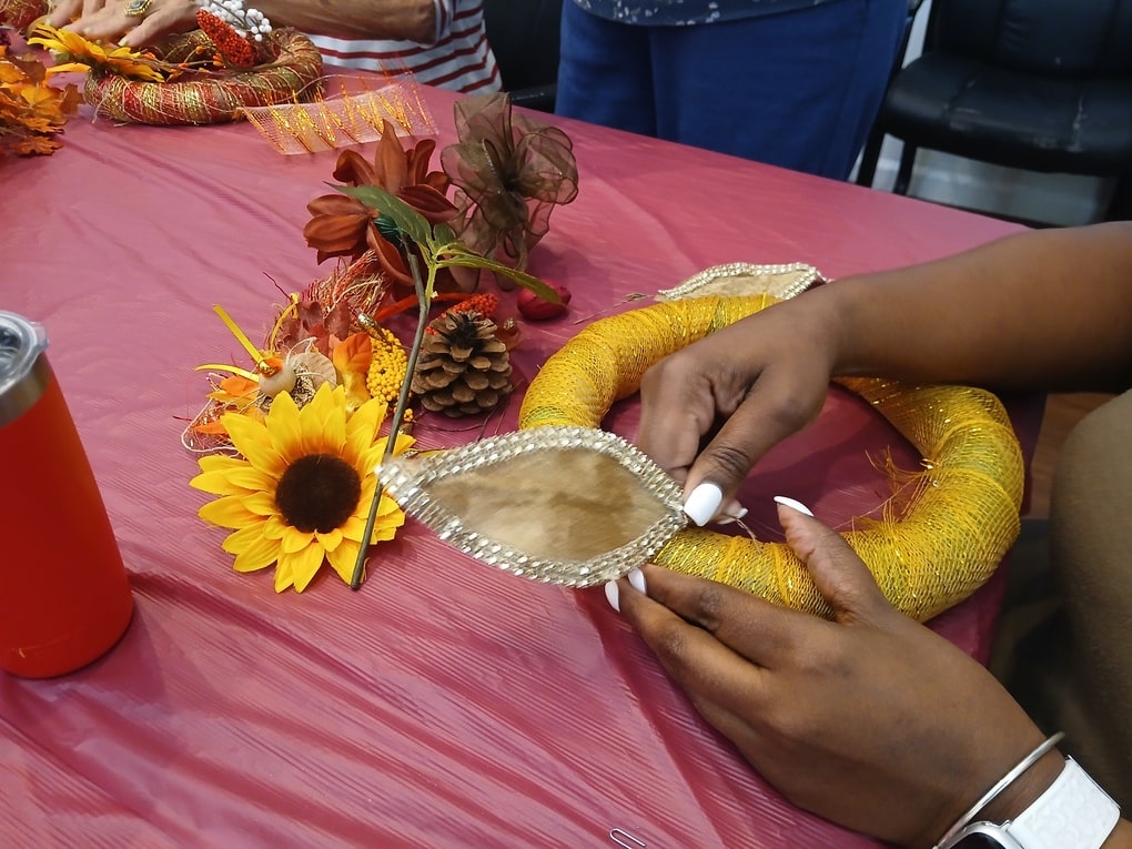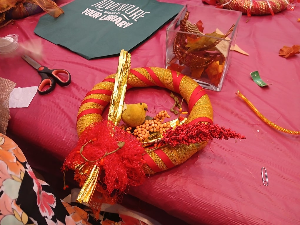 Amy Elakman from Talking Books came to teach her workshop on holiday wreath-making, using Styrofoam and tons of wonderful baubles. Thank you, Amy!