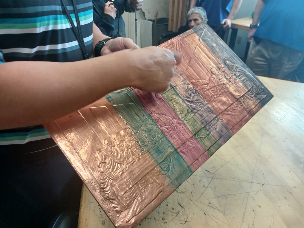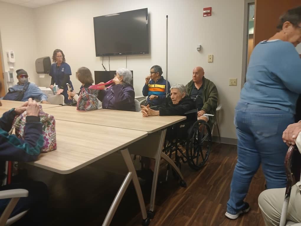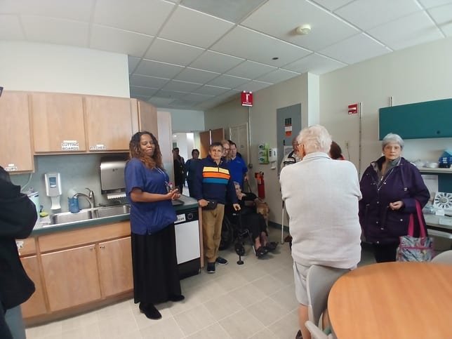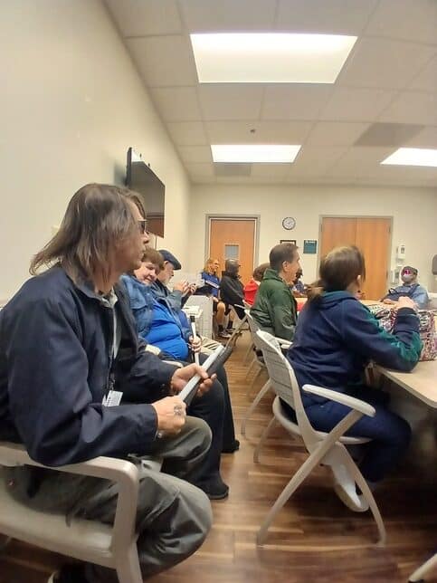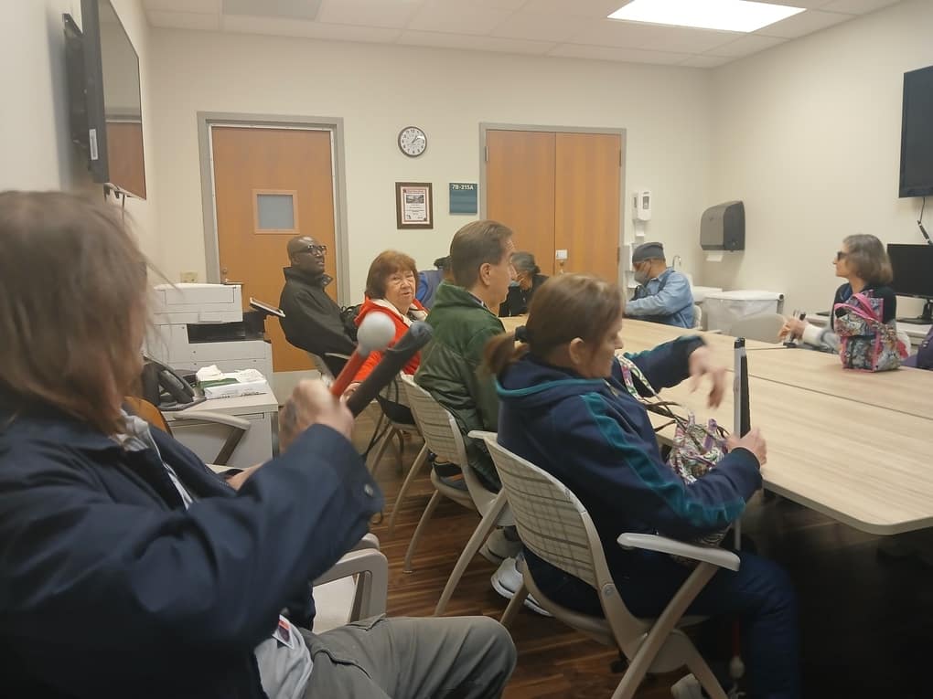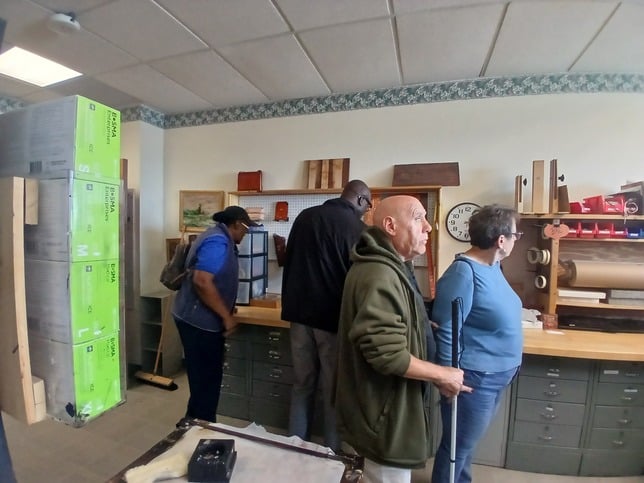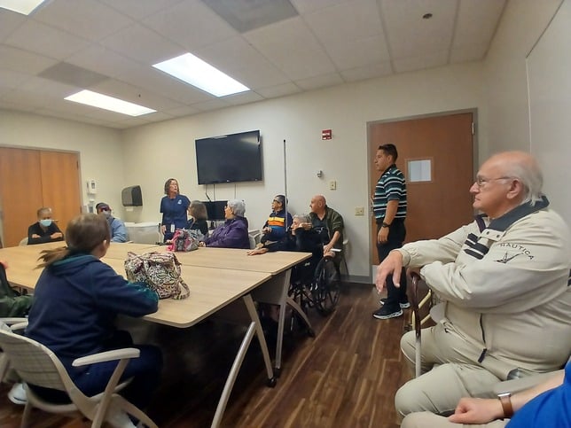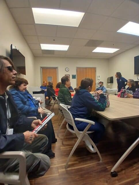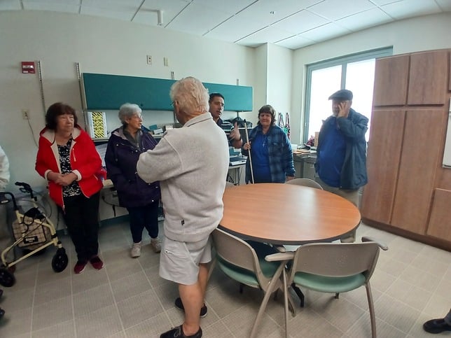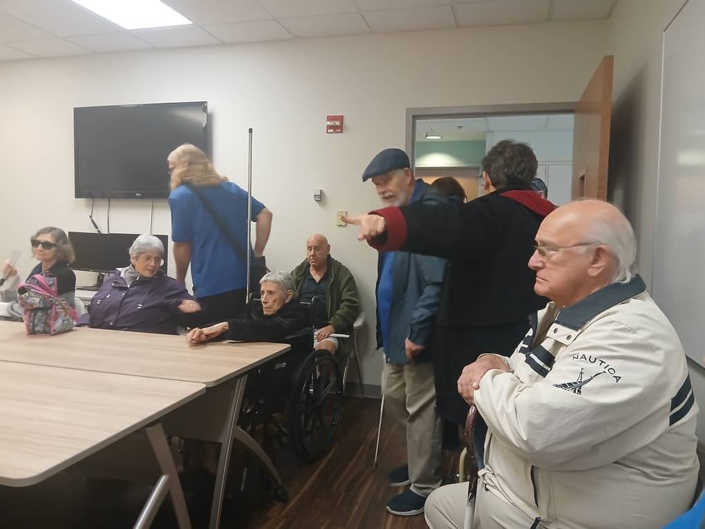 FOCB students and staff visited the VA Hospital for a tour and lecture about their amazing services for veterans who are blind or visually impaired. Gabino Lares, director of the VA’s blind services and rehabilitation programs discussed the many free things available. Then he took us on a wonderful tour of the various rooms set up for the blind to do classes in – woodworking, leather crafting, metal crafts, cooking kitchen, and so much more. A huge thank you to Gabino and staff on a great day!