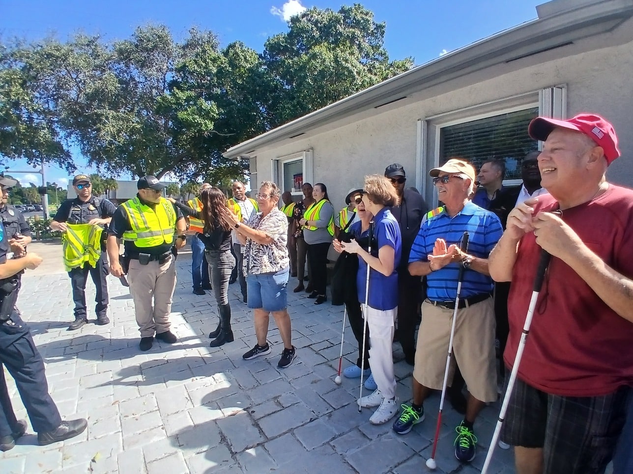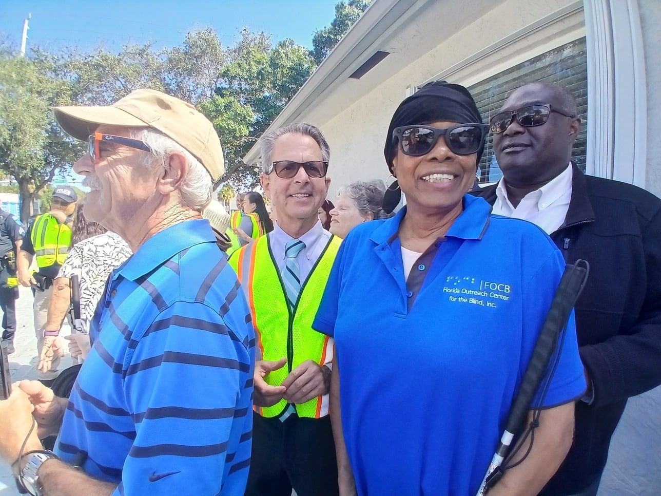 FOCB’s White Cane Safety Day event was a smash! Staff and students, the mayor, commissioners and councilmen, and other guests joined us for a day of celebration and awareness, honoring the independence, resilience, and achievements of people who are blind or visually impaired. With our police escort, we marched up busy Congress Avenue to draw the attention of all motorists who need to learn that the blind and visually impaired have the right of way when crossing streets. On October 6, 1964, President Lyndon B. Johnson and the U.S. Congress signed a joint resolution and proclaimed that October 15 be celebrated as White Cane Safety Day every year. Together as a nation, we can make the streets safer and raise awareness regarding the White Cane Law and the Equal Access Law.